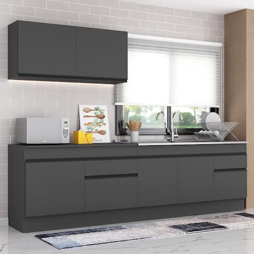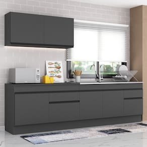 Conteúdo da Embalagem: 1 (um) armário aéreo 120cm 1 (um) balcão com tampo 120cm 1 (um) balcão com tampo 150cm 1 (um) kit com rodapés