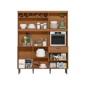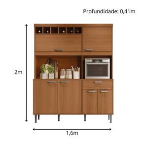 O Armário Dakota se destaca pelo amplo espaço de armazenamento. Com 5 portas, 1 gaveta, prateleiras e nichos, ele oferece a capacidade necessária para acomodar todos os seus utensílios e louças de forma organizada. Além disso, conta com um espaço especial para adega, perfeito para armazenar até 6 garrafas, e um compartimento para micro-ondas, facilitando o acesso aos eletrodomésticos mais utilizados.