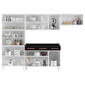 O(a) Armário de Cozinha Compacta de Aço Completa Mirage New 14 Portas 3 Gavetas Branco/Preto 815471 - Prn Móveis é produzido em MDP e Aço na escala de brilho Brilhante, e possui um grau de dificuldade de montagem: Médio.