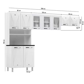 Armário de Cozinha Compacta de Aço Telasul Star C/ Vidro 3 Peças Branco - Telasul