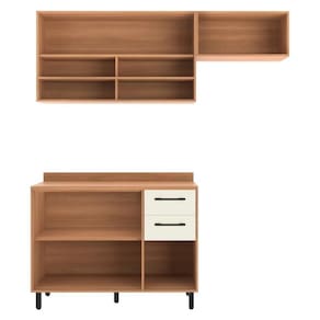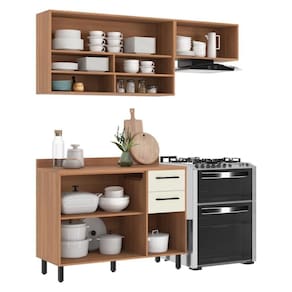 O Armário de Cozinha Compacta Modulada 3 Peças com Balcão Havana Multimóveis CR20325 é perfeito para agregar funcionalidade e estilo no seu lar. É composto por 3 módulos individuais que oferecem liberdade total para dispor do jeito que melhor se encaixarem no ambiente. Produzido em MDP (15mm) com acabamento acetinado (cerca de 20% de brilho), garante durabilidade e resistência. Com amplo espaço interno para organização, possui 5 portas e 2 gavetas com corrediças telescópicas, que proporcionam um manuseio suave e silencioso. As portas basculantes com pistão constantes nos aéreos permitem um manuseio seguro e facilidade na organização dos utensílios de cozinha. Conta com espaço para fogão/geladeira, balcão com tampo de 25mm removível (suporta até 30kg) e com pia de 120cm. Para conferir elegância e estabilidade aos módulos, esta linda cozinha acompanha puxadores e pés em PVC com regulagem de altura.
