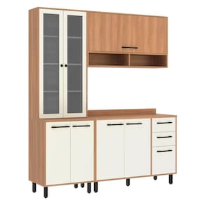 O Armário de Cozinha Compacta Modulada 3 Peças com Balcão Havana Multimóveis CR20331 é perfeito para agregar funcionalidade e estilo no seu lar. É composto por 3 módulos individuais que oferecem liberdade total para dispor do jeito que melhor se encaixarem no ambiente. Produzido em MDP (15mm/tampos 25mm) com acabamento acetinado (cerca de 20% de brilho), garante durabilidade e resistência. Com amplo espaço interno para organização, possui 8 portas e 2 gavetas com corrediças telescópicas, que proporcionam um manuseio suave e silencioso. A porta basculante com pistão constante no armário aéreo permite um manuseio seguro e facilidade na organização dos utensílios de cozinha, enquanto as 2 portas com vidro da cristaleira possibilitam a exposição de suas melhores louças. Além disso, possui balcão com tampo removível que suporta até 30kg e é com pia de 120cm. Para conferir elegância e estabilidade aos módulos, esta linda cozinha acompanha puxadores e pés em PVC com regulagem de altura.
