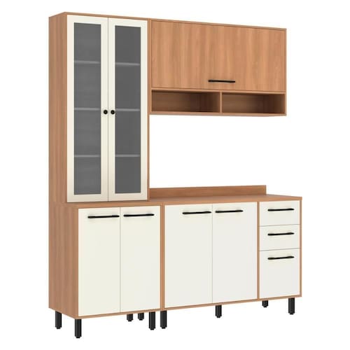 Produto Composto por: 1 cristaleira 65cm, 1 armário aéreo 120cm, 1 balcão com tampo 120cm, manual de montagem e kit ferragem.