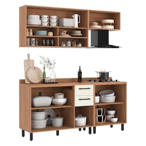 Imagine um produto que se adapta ao seu estilo e às suas necessidades: é a Armário de Cozinha Compacta Modulada 4 Peças com Balcão Havana Multimóveis CR20337. É composta por 4 módulos individuais que oferecem liberdade total para dispor do jeito que melhor se encaixarem no ambiente. Produzida em MDP (15mm/tampos 25mm) com acabamento acetinado (cerca de 20% de brilho), garante durabilidade e resistência. Com amplo espaço interno, possui 7 portas, incluindo 2 basculantes, e 2 gavetas com corrediças telescópicas, que proporcionam um manuseio suave e silencioso. Conta com espaço dedicado para utensílios mais altos, além de balcão para cooktop (NÃO possui recorte). O balcão de 120cm possui tampo que suporta até 30kg e é com pia. Para conferir elegância e estabilidade aos módulos, esta linda cozinha acompanha puxadores e pés em PVC com regulagem de altura.