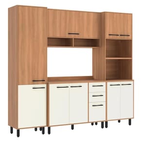 O Armário de Cozinha Compacta Modulada 4 Peças Havana Multimóveis CR20329 é perfeito para agregar funcionalidade e estilo no seu lar. É composto por 4 módulos individuais que oferecem liberdade total para dispor do jeito que melhor se encaixarem no ambiente. Produzido em MDP (15mm/tampos 25mm) com acabamento acetinado (cerca de 20% de brilho), garante durabilidade e resistência. Com amplo espaço interno para organização, possui 10 portas e 2 gavetas com corrediças telescópicas, que proporcionam um manuseio suave e silencioso. A porta basculante com pistão constante no armário aéreo permite um manuseio seguro e facilidade na organização dos utensílios de cozinha. Além disso, conta com espaço para forno/micro-ondas, balcão com tampo removível que suporta até 30kg e é com pia de 120cm. Para conferir elegância e estabilidade aos módulos, esta linda cozinha acompanha puxadores e pés em PVC com regulagem de altura.