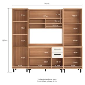 Altura: 220cm | Largura: 240cm | Profundidade: 50cm (balcão) - 30cm (armário aéreo)