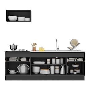 Conteúdo da Embalagem: 1 (um) armário aéreo 70cm 1 (um) balcão com tampo 70cm 1 (um) balcão com tampo 150cm 1 (um) kit com rodapés