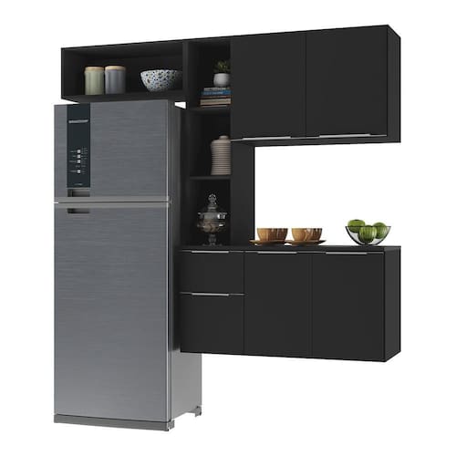 A Cozinha Compacta com Armário e Balcão Sofia Multimóveis tem um excelente custo benefício e é ideal para espaços compactos. Produzida em MDP com acabamento acetinado (cerca de 20% de brilho), que garante maior durabilidade e resistência, possui uma gaveta com corrediças metálicas (mais leveza no manuseio), puxadores em ABS e tampo em MDP 15mm com pintura de alta resistência. Este modelo de balcão não é indicado para utilização de pia. Por ser um modelo de cozinha suspensa (não acompanha pés), você pode ajustar a altura dela para encaixar a geladeira e/ou fogão conforme sua necessidade e o nicho aéreo é individual, ou seja, você pode montar de ambos os lados.