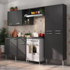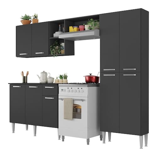 Armário de Cozinha Compacta Pequim UP Multimóveis com Balcão - Preto - Preto