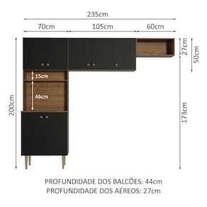 Medidas totais: 200 cm de altura x 235 cm de largura x 44 cm de profundidade na torre e 27 cm nos aéreos.