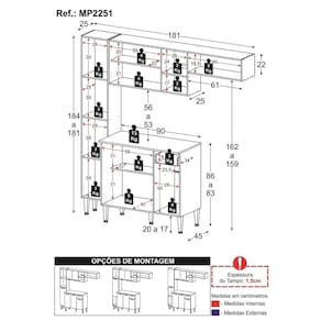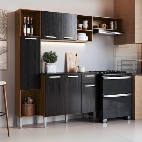 Versatilidade máxima Aproveite ao máximo o espaço disponível com o espaço dedicado para fogão ou geladeira. A porta do paneleiro conta com 3 possibilidades de montagem escolha posicioná-la na parte superior, inferior ou central, de acordo com a sua necessidade.