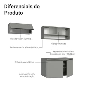 - 52 cm de profundidade no balcão e 31 cm nos aéreos