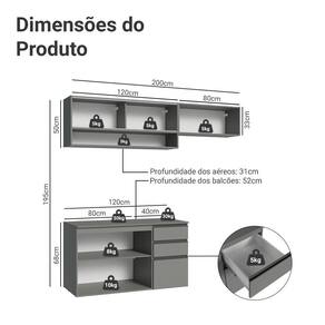 Nome do Simples no Fornecedor: Armário de Cozinha Compacta Suspenso 200cm Cinza Nice Madesa XA12