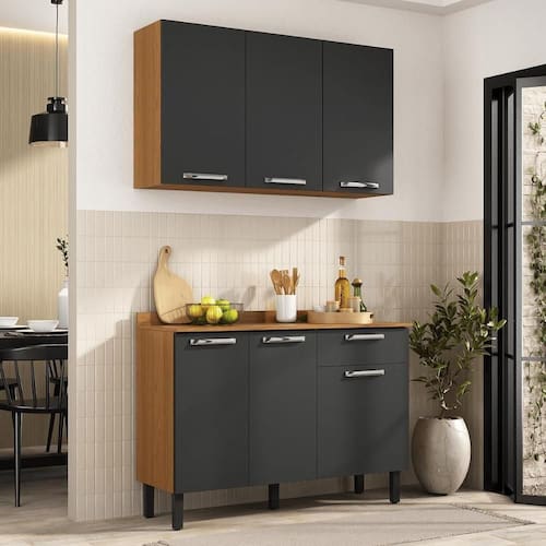 O Armário de Cozinha Compacta Vegas 120cm da Itatiaia une design moderno, funcionalidade e praticidade em um só produto. Com acabamento na cor grafite, é ideal para quem deseja uma cozinha compacta planejada, elegante e organizada.