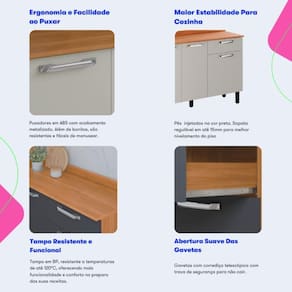 Tipos de móveis de cozinha: Armário | Manual de montagem incluso: Sim | Requer montagem: Sim | Materiais do corpo: Corpo em MDP e Fundo HDF