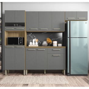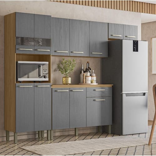 Armário de Cozinha Compacta Versalhes 12 Portas, 1 Gaveta e Balcão com Tampo em MDP Freijó/Gris - Kits Paraná