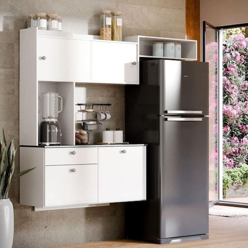 O Armário De Cozinha Suspenso Lara é a combinação perfeita entre praticidade e modernidade. Perfeita em apartamentos e casas que precisam de total otimização do espaço, a cozinha é composta por materiais de ótima qualidade. Além disso, o espaço é ideal para organizar todos os utensílios, como panelas, eletroportáteis e muito mais.