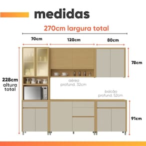 DIFERENCIAIS: Estrutura 100% MDF / Paneleiro com vidro reflecta moderno / Gaveta com organizador de talheres / Nicho com espaço para micro ondas / Corrediças telescópicas 3 estágios / Dobradiças Slow motion / Pistão a gás / Pés reguláveis.