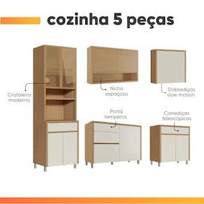 MODELO: Armário De Cozinha Completa 100% Mdf 11 Portas 5 Gavetas Cléo Carvalho/Off White Nesher
