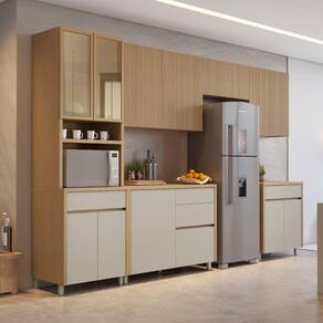 Armário De Cozinha Completa 100% Mdf 12 Portas 5 Gavetas Cléo Raissa Madeirado/off White Madeirado/off White