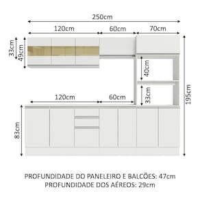- 47 cm de profundidade nos balcões e na torre e 29 cm nos aéreos