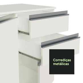 Para completar, o acabamento branco é realizado em Pintura Poliéster de alta resistência, um processo ecologicamente correto e que conserva a beleza do móvel por muito mais tempo.