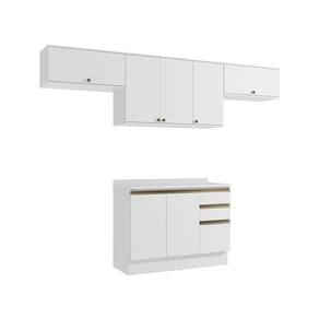Além da possibilidade de montá-lo com pezinhos, que podem ser adquiridos separadamente, você deixa a sua cozinha do jeito que sempre quis. Os puxadores, com modelos diferentes no balcão e aéreos, são metálicos na cor dourada, completando a beleza e o design do produto. Renove seu espaço e o deixe ainda mais completo com Conjunto CB1417 da Cozinha Celeste Kappesberg.