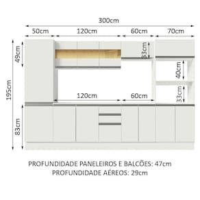 - 47 cm de profundidade nos balcões e torres e 27 cm nos aéreos