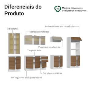 - 1 Balcão de 120 cm com 3 portas e 2 gavetas (Acompanha o tampo)