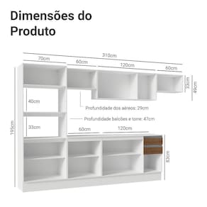- 47 cm de profundidade no balcão e na torre e 29 cm nos aéreos