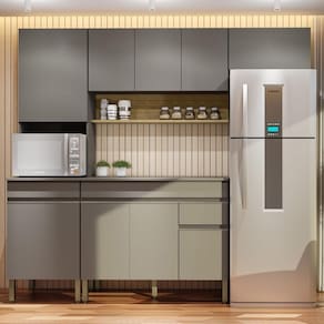 Conheça Cozinha Line que une praticidade e estilo. Fabricada em MDP de 15 mm, com nove portas, uma gaveta e prateleiras internas, o móvel também conta com passa-fios no paneleiro e dobradiças e corrediças telescópicas 100% metálicas. Possui pés reguláveis em plástico resistente e acabamento em pintura com textura sensível ao toque, além de secagem com luzes UV para maior durabilidade.