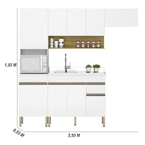 Conheça Cozinha Madrid 1.2 que une praticidade e estilo. Fabricada em MDP de 15 mm, com nove portas, uma gaveta e prateleiras internas, o móvel também conta com passa-fios no paneleiro e dobradiças e corrediças telescópicas 100% metálicas. Possui pés reguláveis em plástico resistente e acabamento em pintura com textura sensível ao toque, além de secagem com luzes UV para maior durabilidade.