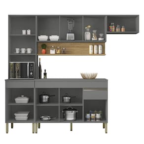 Armário de Cozinha Completa 1,5 com Balcão Com Tampo 9 Portas Line - Kits Paraná