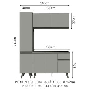 - 52 cm de profundidade no balcão e na torre e 31 cm no aéreo