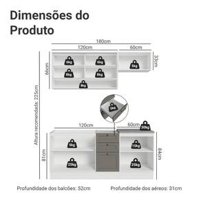 - 52 cm de profundidade nos balcões e 31cm nos aéreos