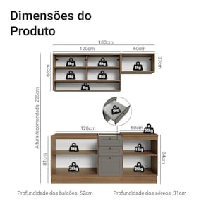 - 52 cm de profundidade nos balcões e 31cm nos aéreos