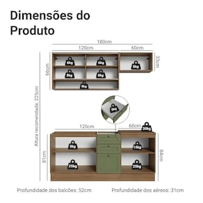 - 52 cm de profundidade nos balcões e 31cm nos aéreos