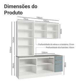 - 60 cm de profundidade nos balcões e 31 cm no aéreo e na cristaleira