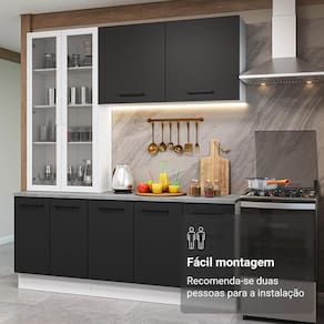 Nome do Simples no Fornecedor: Armário de Cozinha Completa 190cm com Cristaleira Branco/Preto Agata Madesa 01
