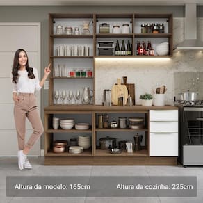A disposição interna é ótima, com diversas gavetas, prateleiras e nichos. Assim, fica mais fácil fazer a organização de todos os utensílios. Além disso, o balcão acompanha tampo, que pode ser removido para instalação de pia de inox ou pedra, nas medidas de 120 x 60 cm.