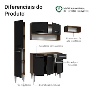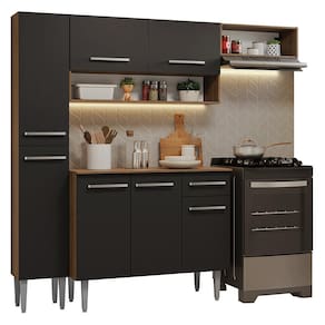 Armário de Cozinha Completa 197 cm Rustic/Preto Emilly Madesa 02 - Preto | Marrom