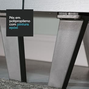 Por fim, o acabamento do móvel é cinza, feito em Pintura Poliéster ecológica, que oferece proteção contra a água e o calor.