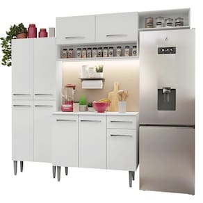 Com acabamento Branco, trazendo um visual leve para sua cozinha. Essa composição conta com módulos que oferecem praticidade para o preparo das refeições e mais espaço para manter tudo sempre organizado.