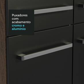 Pensando na durabilidade do produto, o móvel possui corrediças e dobradiças metálicas, pés reguláveis em PVC e vidros no modelo pontilhado no aéreo maior, que trazem elegância e sofisticação.