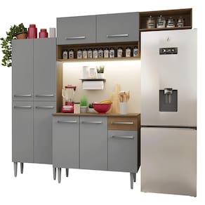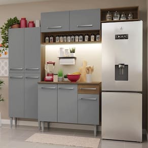 Com acabamento em tom amadeirado Rustic e Cinza, sua cozinha ganha um toque moderno. Essa composição conta com módulos que oferecem praticidade para o preparo das refeições e mais espaço para manter tudo sempre organizado.
