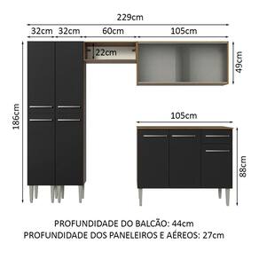 - 44 cm de profundidade no balcão e 27 cm de profundidade no aéreo e nos paneleiros
