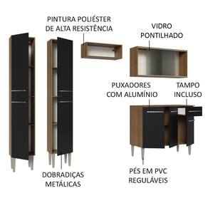Pensando na durabilidade do produto, o móvel possui corrediças e dobradiças metálicas, pés reguláveis em PVC e vidros no modelo pontilhado no aéreo maior, que trazem elegância e sofisticação.