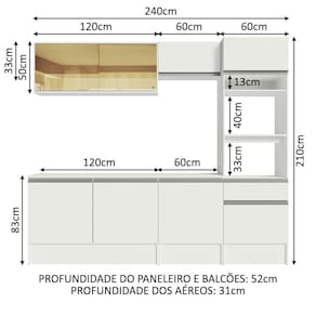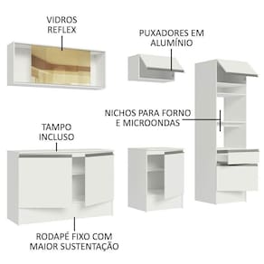 A fabricação é feita com materiais de padrão superior, como a estrutura em MDP, puxadores em perfil total de alumínio, além de dobradiças e corrediças metálicas.