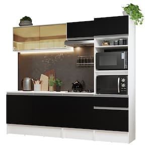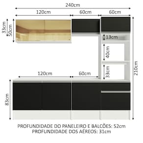 Para completar, o acabamento da estrutura é branco e as portas e frentes são pretas. É feito em Poliéster Protetor ecológico, que consiste na aplicação de 7 camadas resistentes a álcool, água e calor.