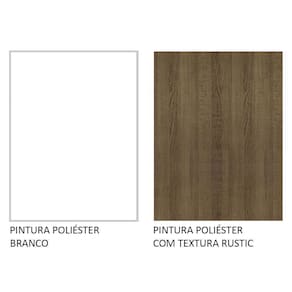 Para completar, o acabamento da estrutura é branco e as portas e frentes são no padrão amadeirado Rustic. É feito em Poliéster Protetor ecológico, que consiste na aplicação de 7 camadas resistentes a álcool, água e calor.